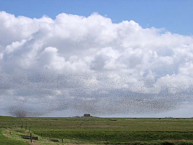 Vorige Woche war ich mit einigen anderen angehenden Biologielehrern auf Exkursion auf der Hallig Langeness, einer der Nordfriesischen Inseln. Wir wohnten im Wattenmeerhaus des WWF und haben tolle Natur erlebt. Vor allem die Vogelschwärme waren beeindruckend: Wir sahen tausende Ringelgänse, die auf ihrem Weg nach Sibirien im Watt Rast machen, um sich neue Energiereserven anzufressen. Außerdem noch Knutts, Pfuhlschnepfen, Austernfischer, Seeschwalben und viele andere.