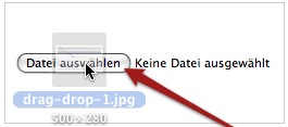 Seit Safari 3.0 (und damit auch in allen anderen Browsern, die die entsprechende Version von WebKit benutzen, z.B: OmniWeb) unterstützen auch die Datei auswählen Buttons im Browser Drag & Drop. Einfach eine Datei auf dem Button ablegen, um sie für den Upload auszuwählen.